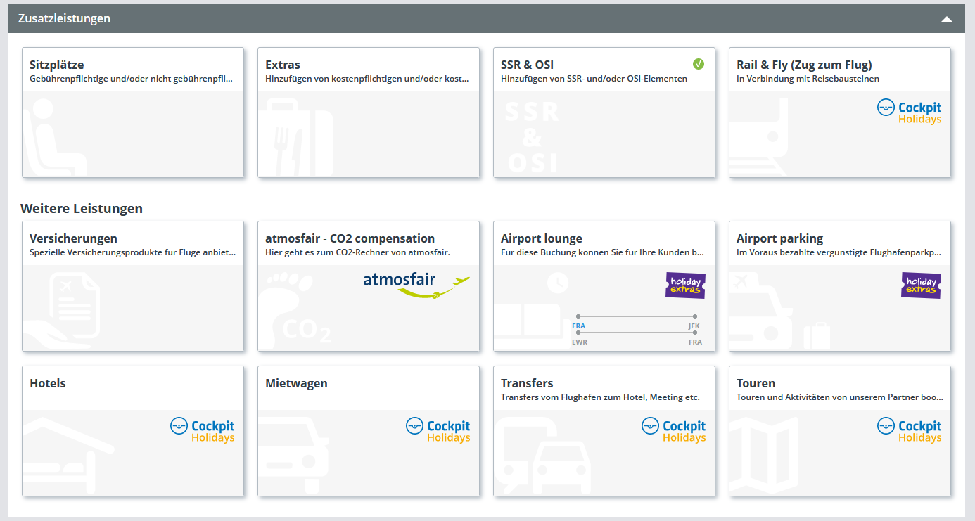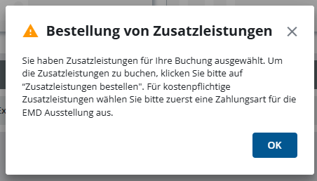 Öffnen Sie Ihre ausgestellte Buchung unter „Meine Buchungen” und klappen Sie den Abschnitt „Zusatzleistungen” auf.