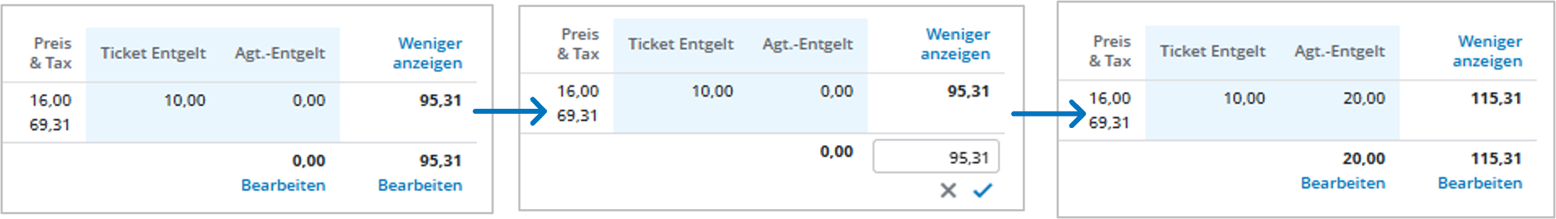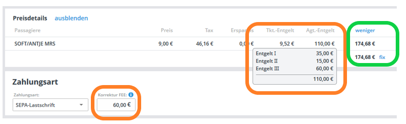 Hinweis: Falls das neue Gesamtentgelt nicht durch die Anzahl der Reisenden teilbar ist, findet systemseitig eine Autokorrektur statt.