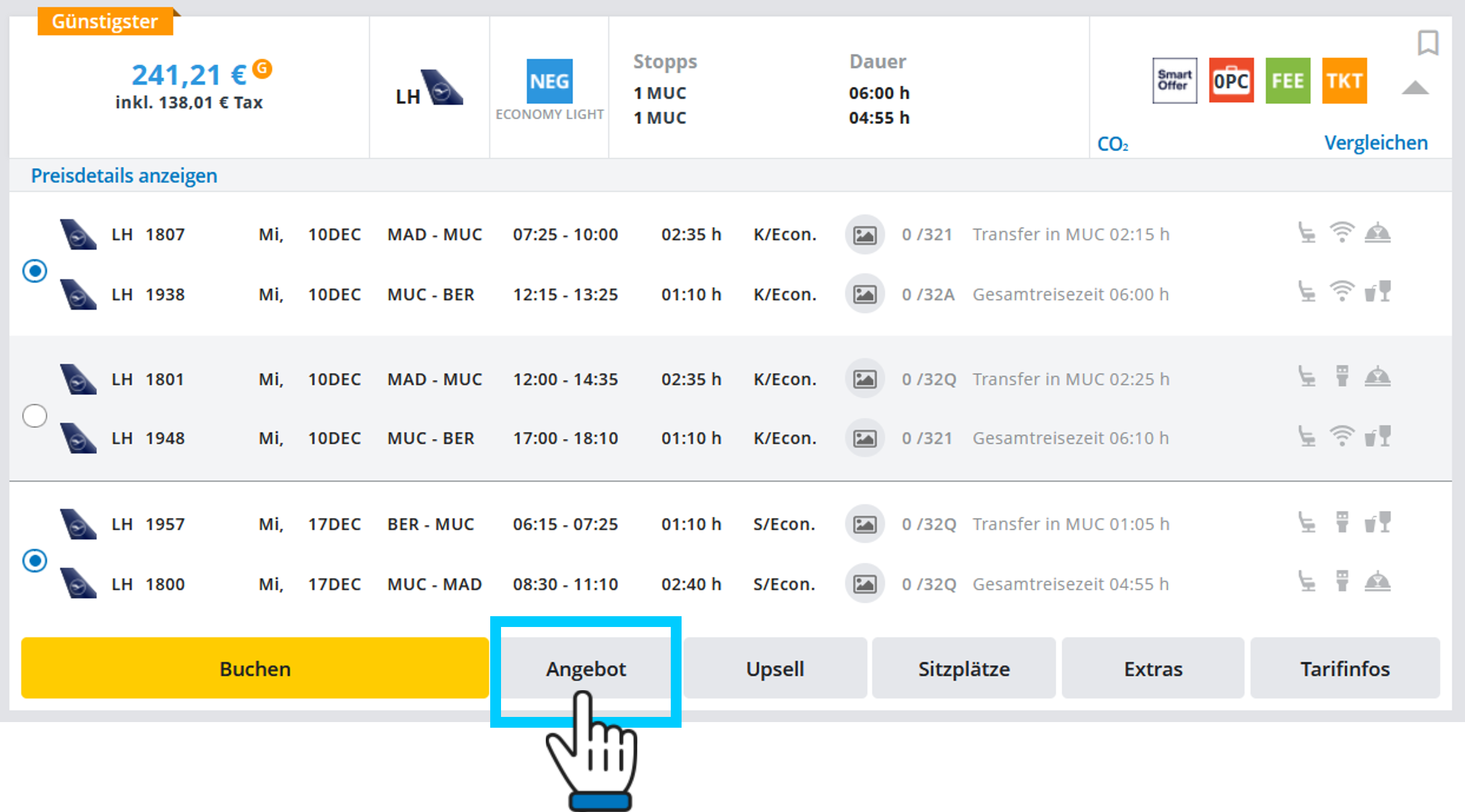 Außerdem können Sie Ihr Angebot durch Auswahl der verschiedenen Optionen individuell gestalten.