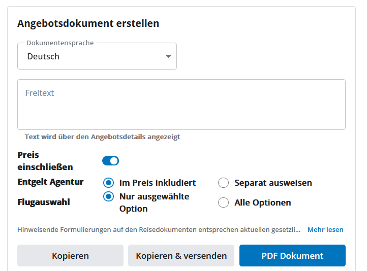 Alternativ können Sie Ihren Kunden das Angebot direkt per E-Mail zusenden, indem Sie auf „Kopieren & versenden” klicken.