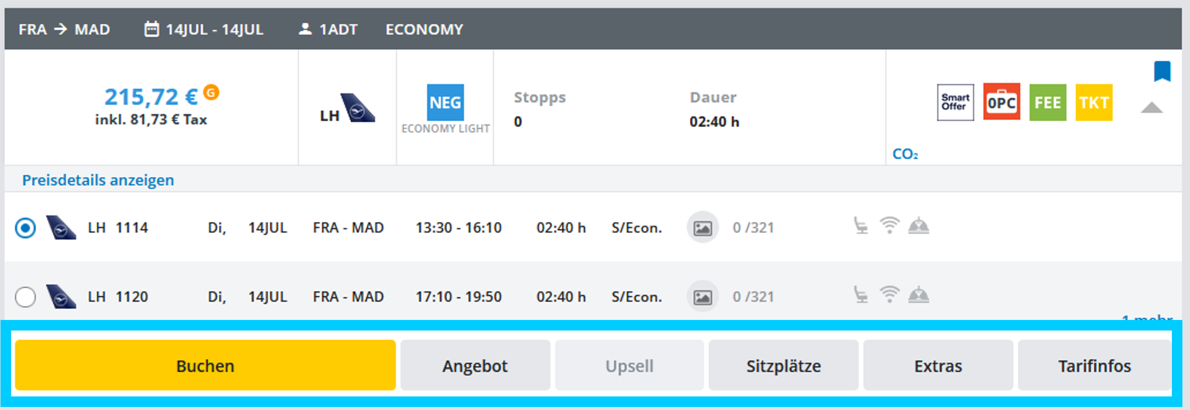 - NDC Angebote sind nur 30 Minuten aus der Liste buchbar.
