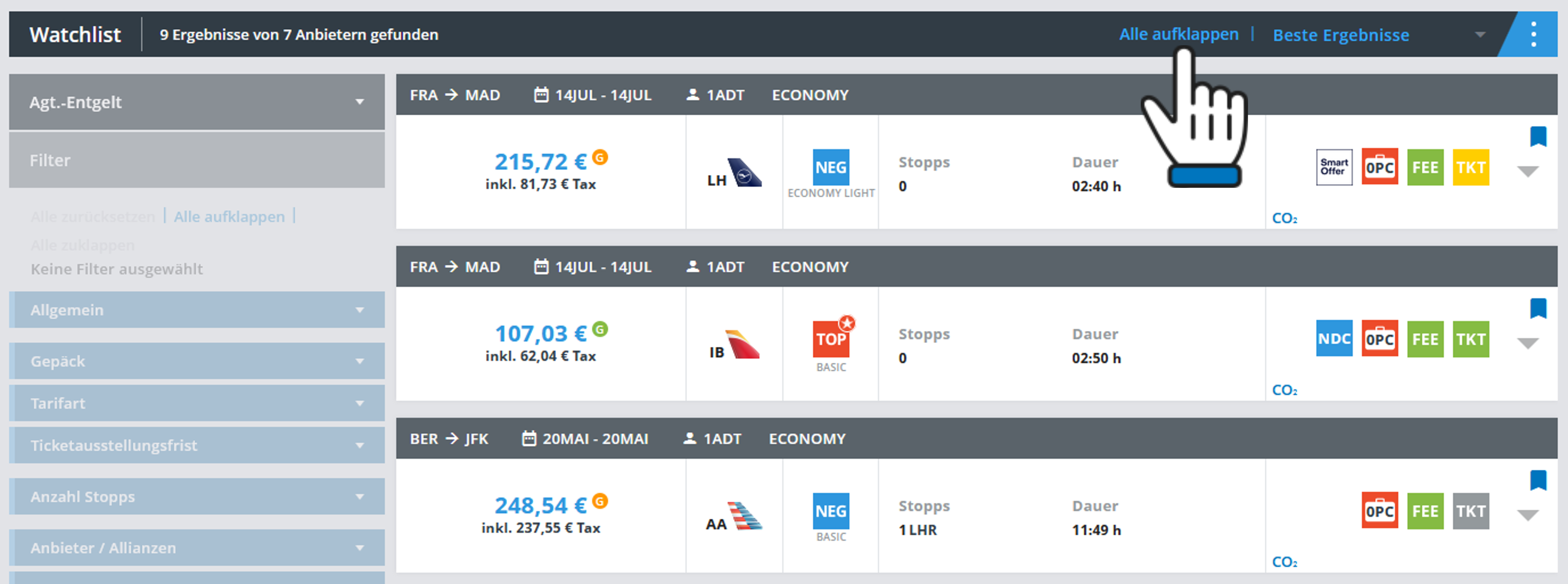 Klappen Sie alle Angebote gleichzeitig auf, um einen besseren Überblick und Vergleich zu erhalten.