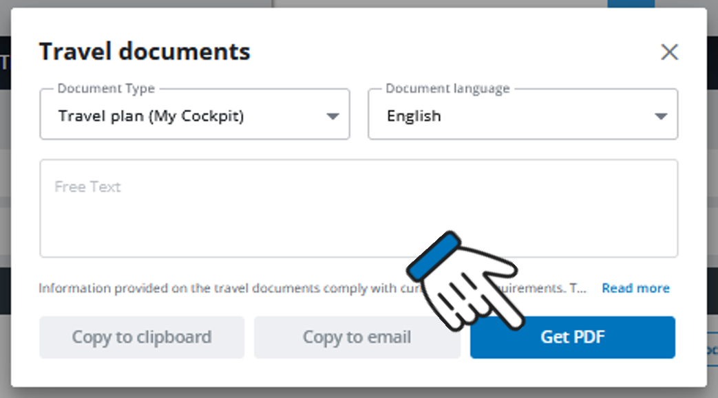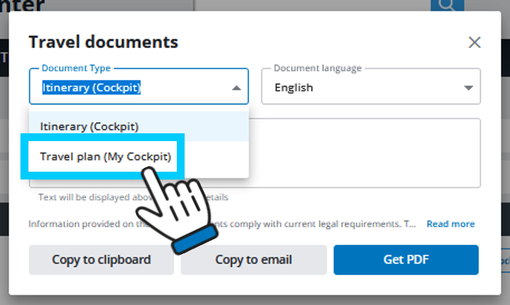 Now just select "Travel Plan (My Cockpit)" and you can then create a PDF file with a dynamic travel plan for your customer as usual.
