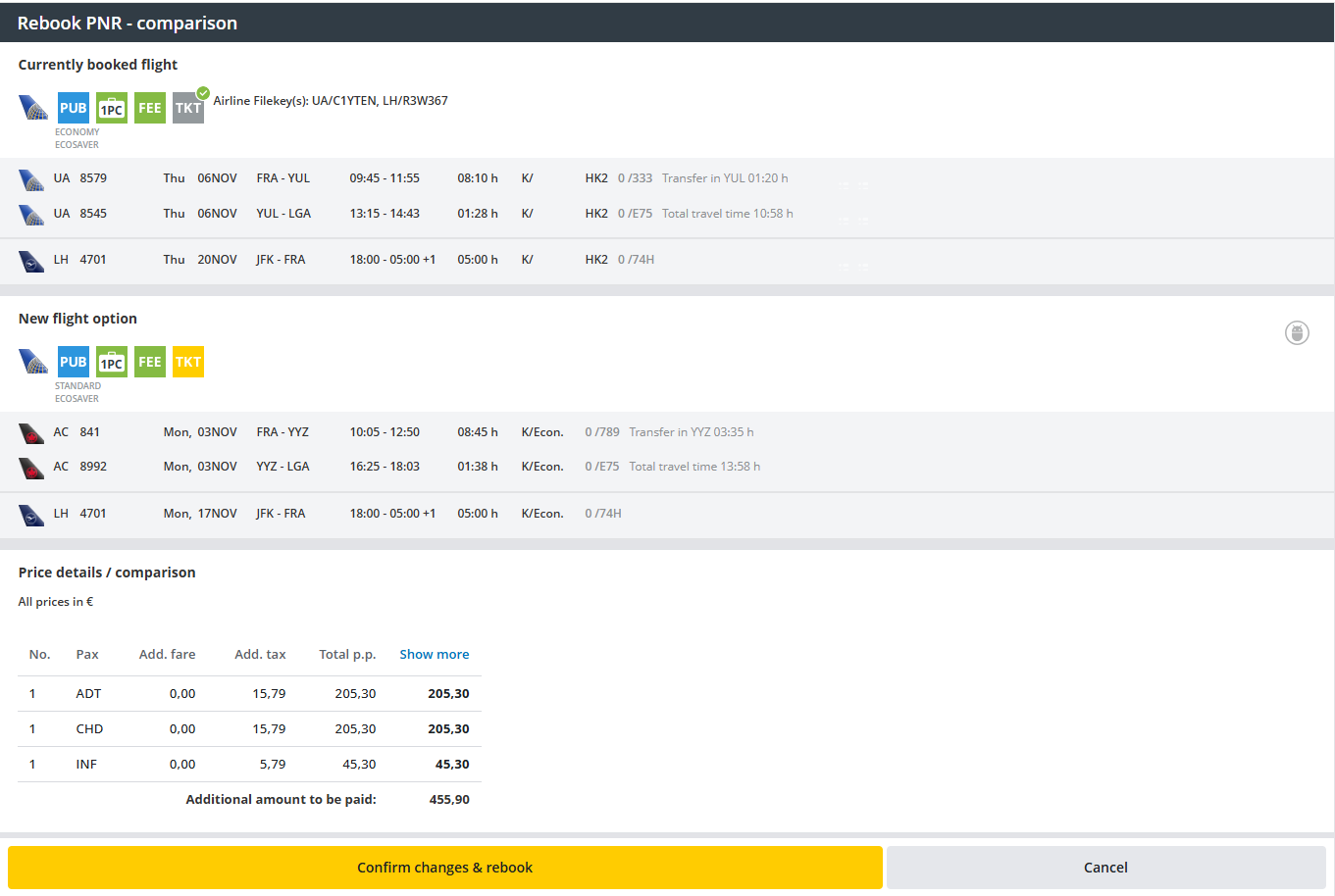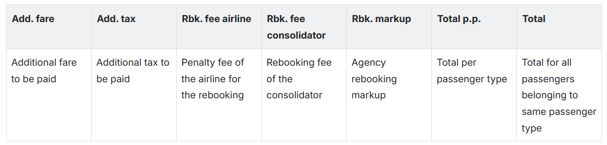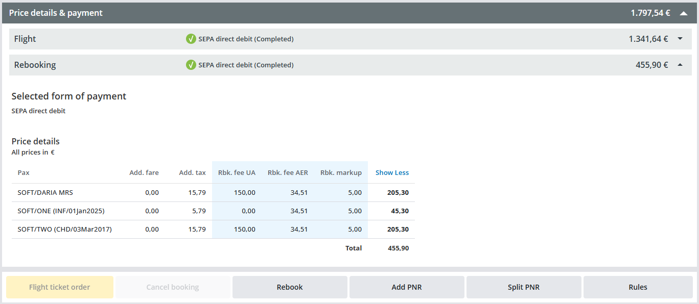 In the Prices details & payments section, a new price accordion with the amounts for the rebooking will be added: