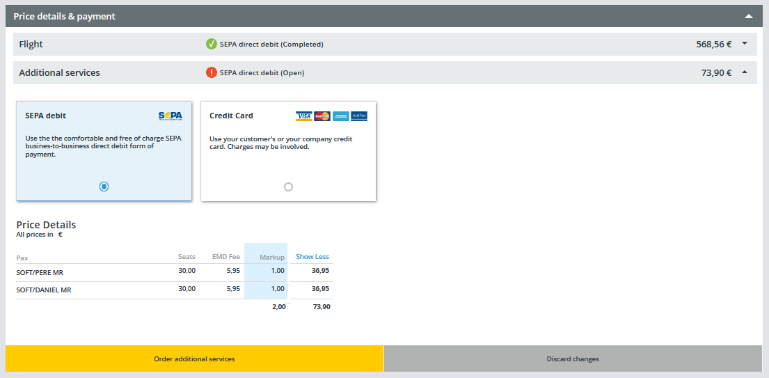Now you can complete the booking of your additional services by clicking on “Order additional services” or you can choose to “Discard changes”.