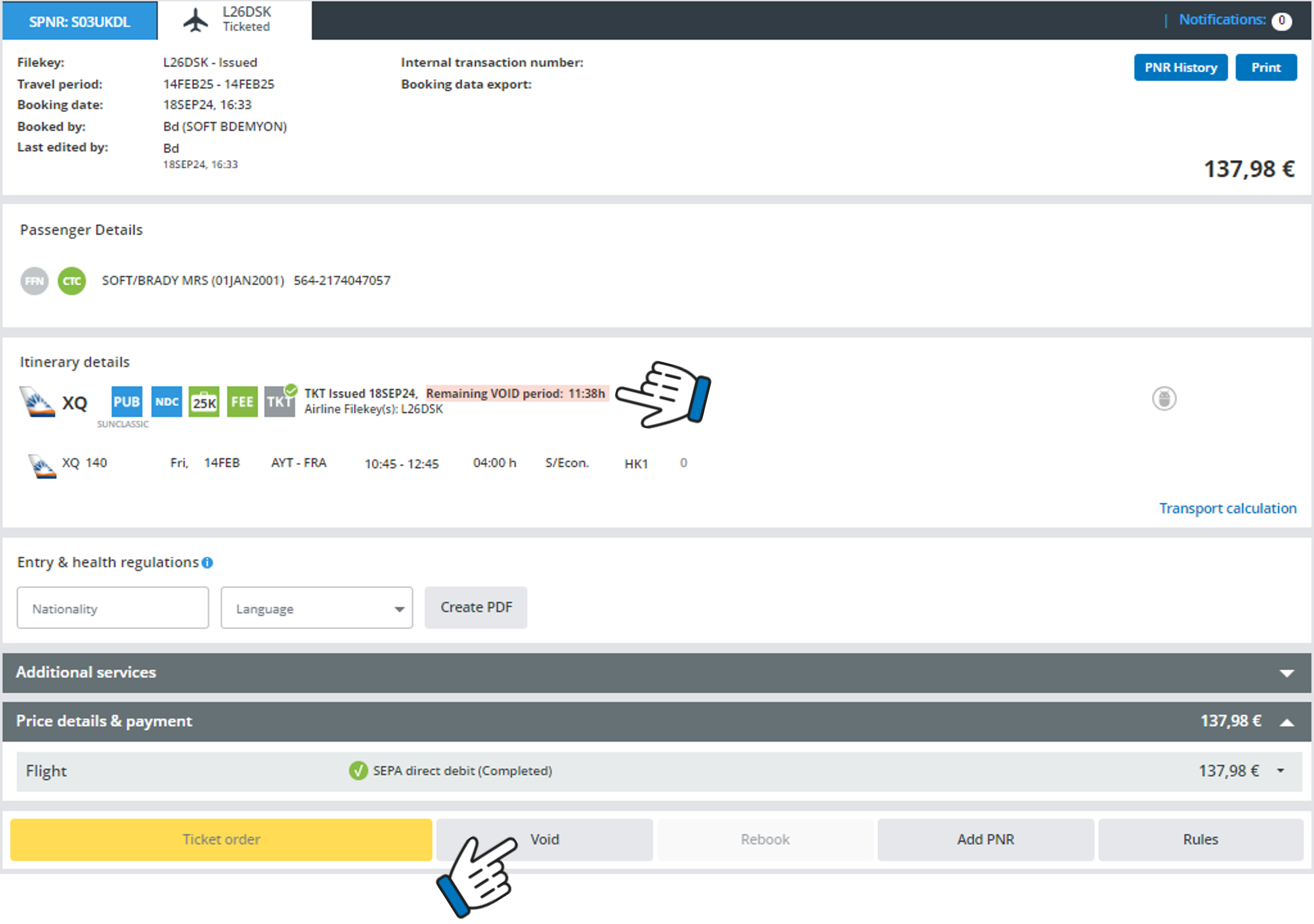 Please note: The VOID period depends on where the ticket was issued. For international fares, the period may therefore expire on the same day.