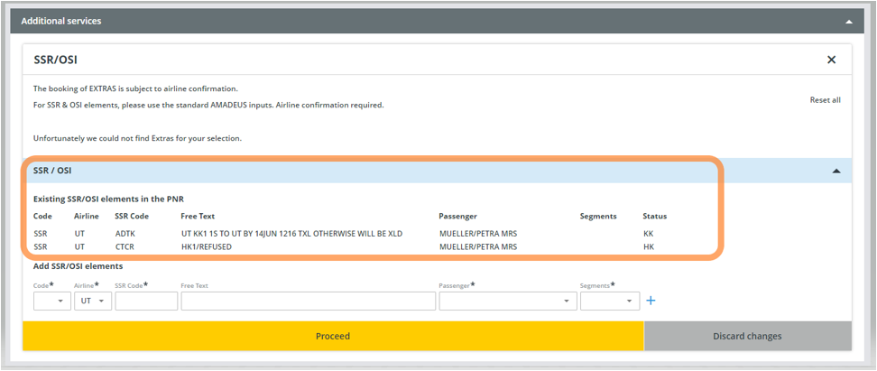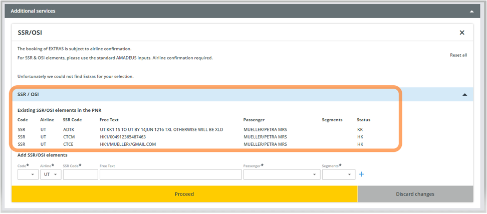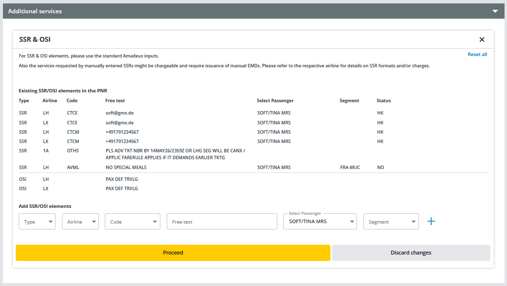 The mandatory elements are entered in the booked GDS as SSR and the corresponding code.