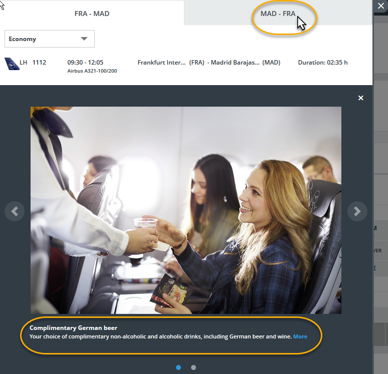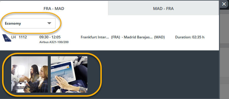 For selected airlines you have the possibility to get more detailed information about the cabin class with pictures and videos.