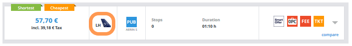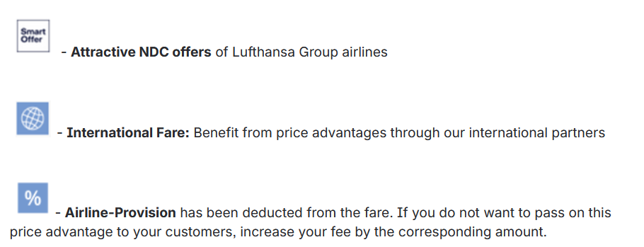 You can also see whether it is, for example, an NDC offer from the LH Group or an international offer.