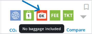 Red: No free baggage allowance or no information available