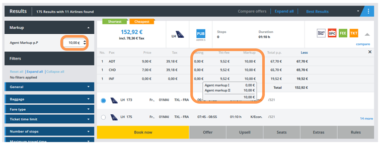 Don´t forget to include your agency markup! The FEE icon informs you whether your agency markup is already included in the price you see or not.