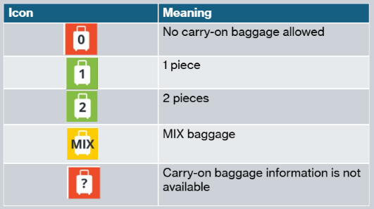 These are the different carry-on baggage icons you may encounter: